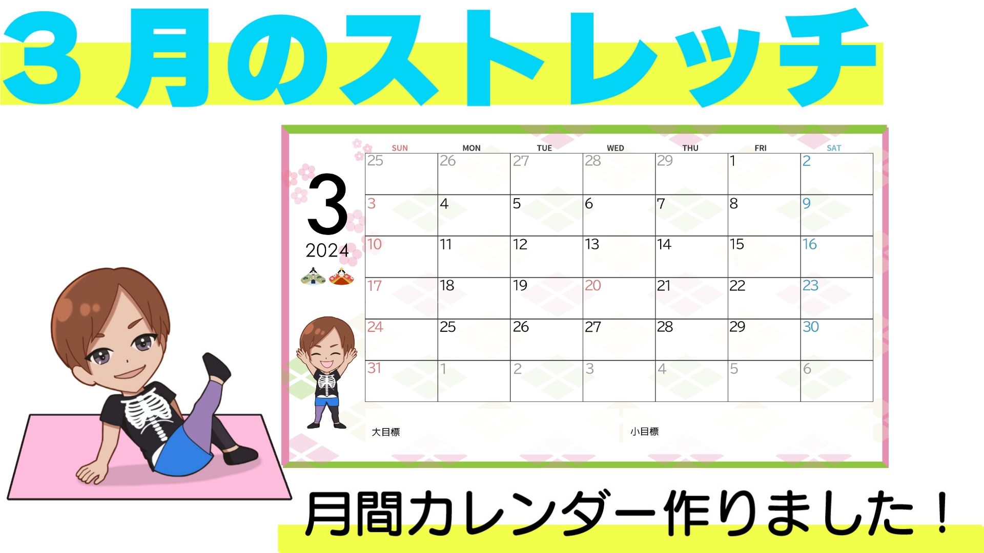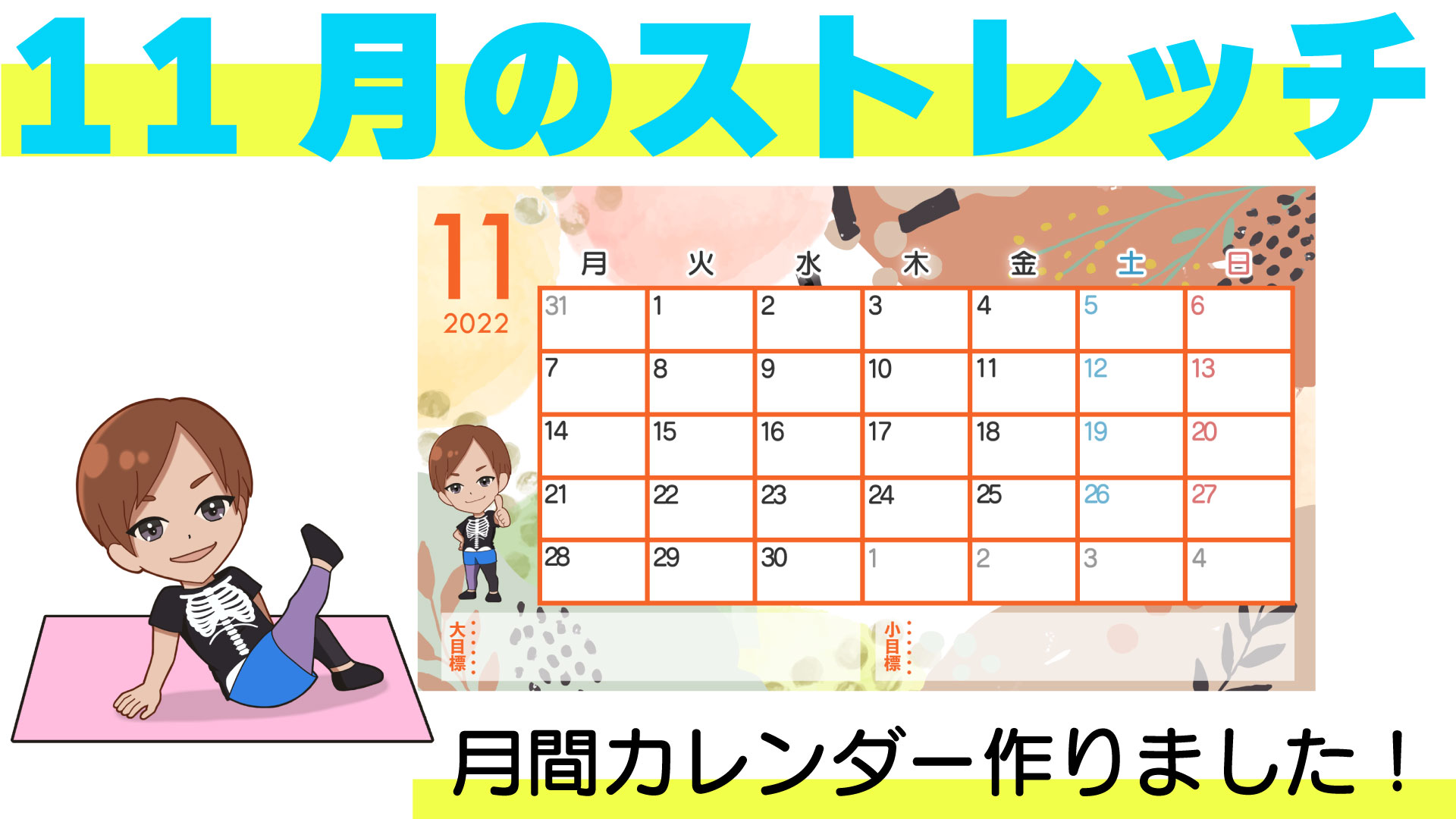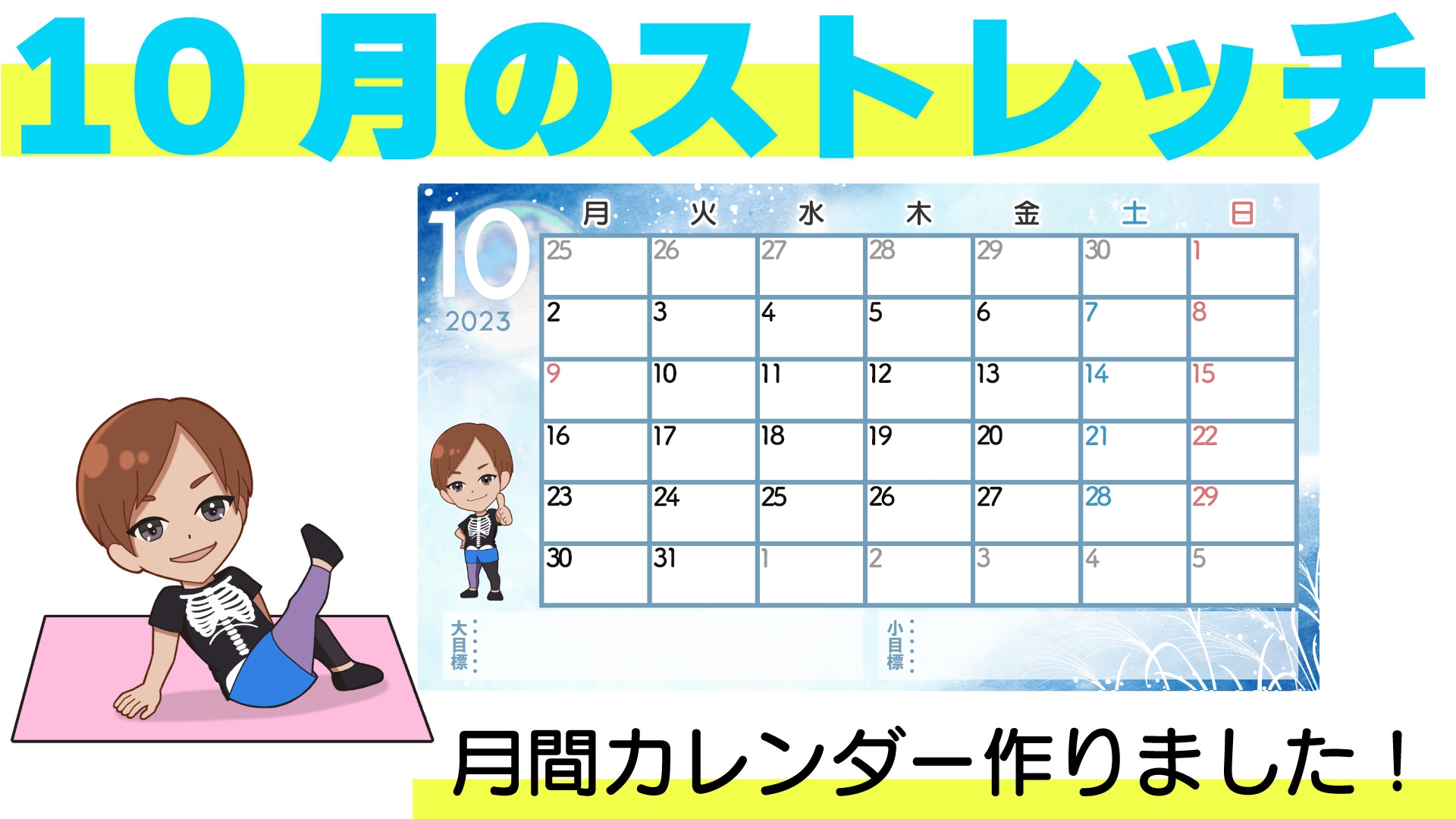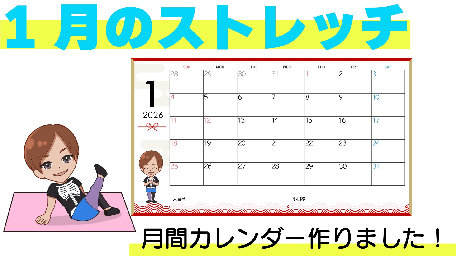カレンダーは「1週間毎のストレッチメニュー」の下から、ダウンロードできます↓↓↓