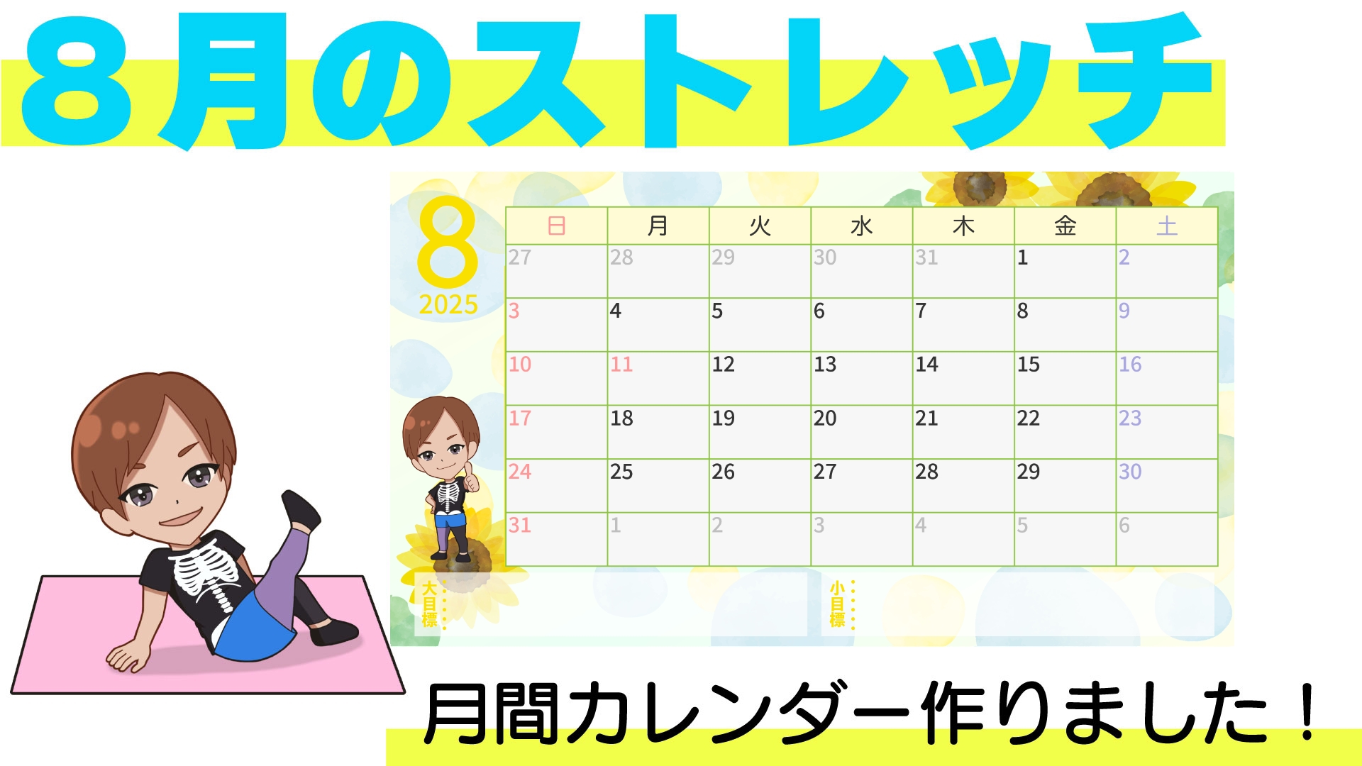 今月もカレンダーと1週間毎のストレッチメニューを活用して