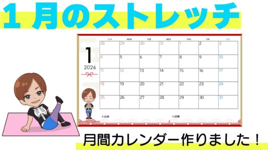 ストレッチカレンダー活用法の記事はこちら2025年もあっという間に1ヶ月が経ちましたね!寒い日が続きますので体を動かす前に、部屋をあたためてケガのないようにしてくださいね!今月もカレンダーと1週間毎のストレッチメニューを活用して理想の体型を手に入れましょう!...